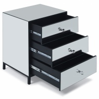 Mesa Cabeceira elaborado em madeira de eucalipto e MDF revestido por espelho liso. A peça conta com 03 gavetas com corrediças telescópicas, que possuem maior durabilidade e são ideais para armazenar seus objetos, mantendo a composição sempre alinhada. Os puxadores metálicos compõem harmonicamente o produto, tornando seu visual ainda mais exclusivo. Os móveis espelhados, que foram uma tendência dos anos 70, voltam com tudo, por serem flexíveis e proporcionarem uma dose de ousadia, tornando-se uma alternativa irresistível entre os profissionais de interiores. O produto foi criado pela , empresa inspirada em atender clientes refinados e de bom gosto, com produtos diferentes dos encontrados no mercado. A marca dispõe de uma linha exclusiva de espelhados, pensados para transmitir leveza e elegância aos espaços, além de criar uma atmosfera toda especial para o seu lar!