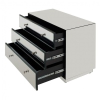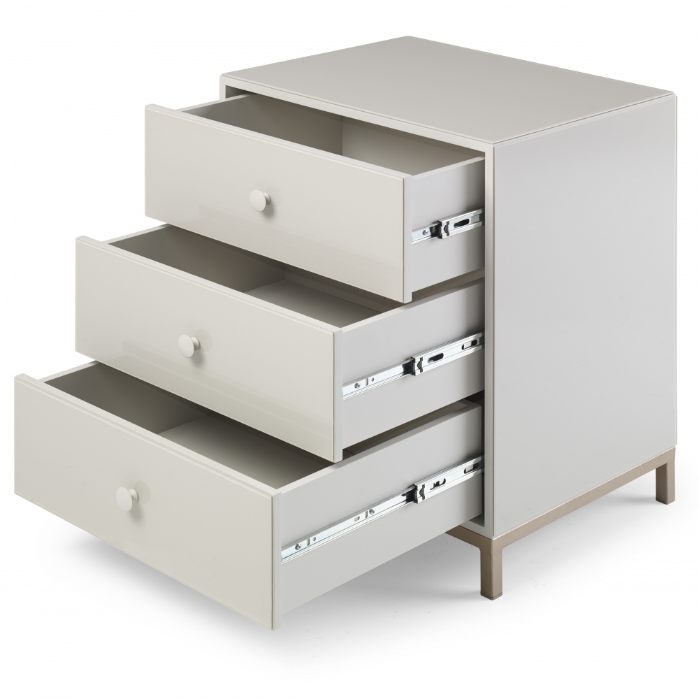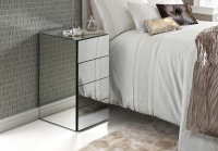 Mesa Cabeceira em MDF revestido em sua estrutura por Espelho Prata liso, Seus espelhos são todos lapidados e polidos, evitando assim qualquer tipo de acidente, além de proporcionar um visual clássico para compor espaços internos, trazendo exclusividade e sofisticação,, sua base consiste em metal(aço carbono) pintado em epoxi, dando mais resistencia a interperies. A peça conta com 03 gavetas com corrediças telescópicas, onde possuem maior durabilidade e são ideais para armazenar seus objetos, mantendo a composição sempre alinhada. Possue Puxadores em metal tornando o produto o efeito moderno e seu visual ainda mais exclusivo. Os móveis espelhados, que foram uma tendência dos anos 70, voltam com tudo, por serem flexíveis e proporcionarem uma dose de ousadia, tornando-se uma alternativa irresistível entre os profissionais de interiores. O produto foi criado pela empresa inspirada em atender clientes refinados e de bom gosto, com produtos diferentes dos encontrados no mercado. A marca dispõe de uma linha exclusiva de espelhados, pensados para transmitir leveza e elegância aos espaços, além de criar uma atmosfera toda especial para o seu lar!