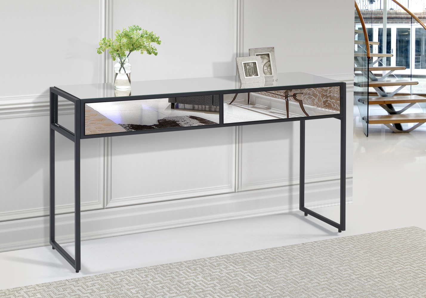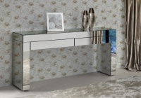 Aparador fabricado em MDF revestido por Espelho Prata liso, Seus espelhos são todos lapidados e polidos, evitando assim qualquer tipo de acidente, além de proporcionar um visual clássico para compor espaços internos, trazendo exclusividade e sofisticação,, sua base consiste em metal(aço carbono) pintado em epoxi, dando mais resistencia a interperies. A peça conta com 02 gavetas com corrediças telescópicas no sistema fecho tok, onde possuem maior durabilidade e são ideais para armazenar seus objetos, mantendo a composição sempre alinhada. Não possue Puxadores onde o sistema fecho tok substitui o mesmo, e para abrir basta precionar a frente de gaveta fazendo com ela se abra automaticamente, tornando o produto o efeito moderno e seu visual ainda mais exclusivo. Com um design moderno, é uma ótima opção que possibilita uma admirável combinação com arranjos florais ou objetos decorativos em sua superfície, levando muito mais elegância à composição. Aposte nessa ideia e surpreenda-se com o resultado!